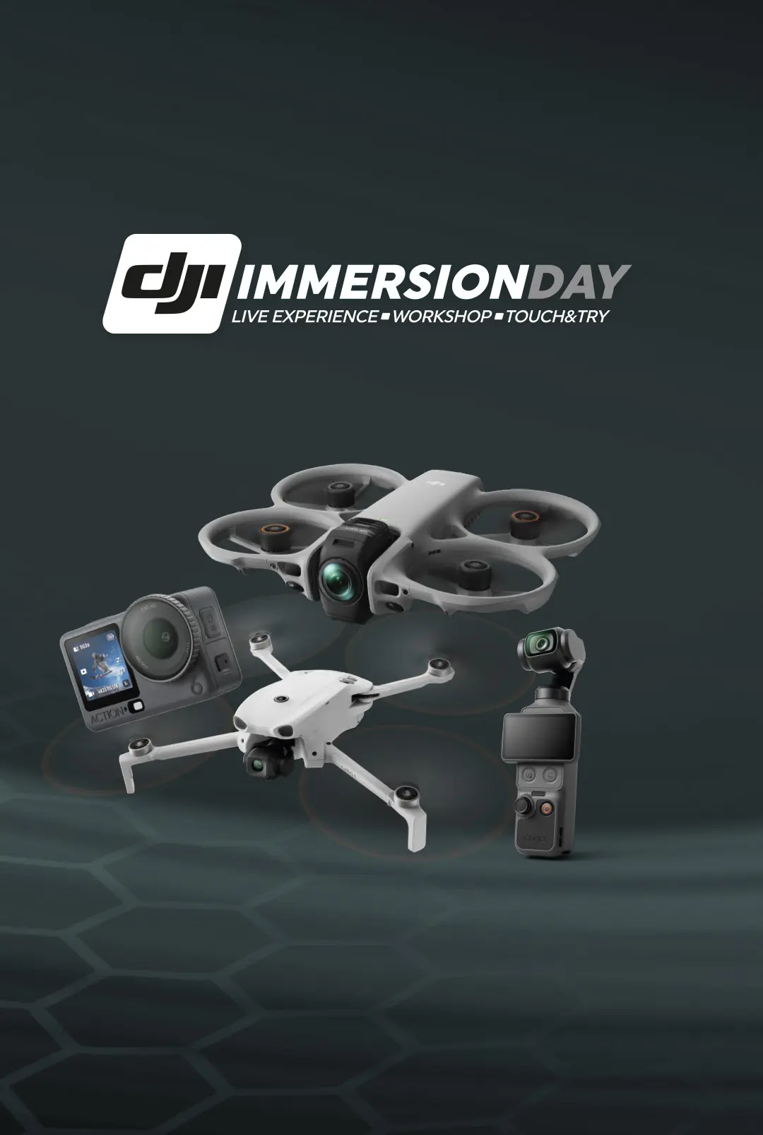 Dal volo immersivo a 360° alla creazione di contenuti in movimento, dagli stabilizzatori professionali alle soluzioni per l’outdoor, DJI Immersion Day è il luogo dove provare, imparare e lasciarsi ispirare