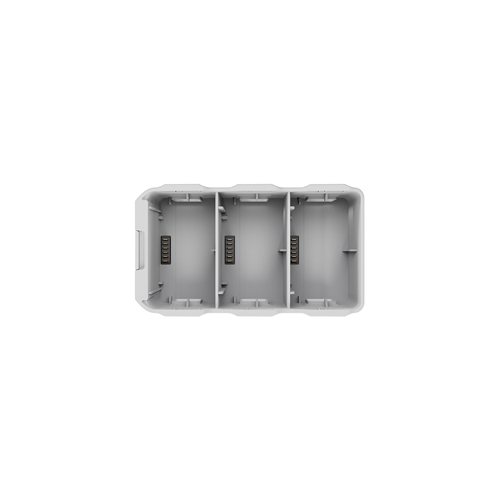 Supporta l’accumulo di energia, trasferendo la potenza residua di più batterie alla batteria con la carica più elevata. Supporta la ricarica in parallelo di tre batterie* quando utilizzato con il caricabatterie portatile DJI 65 W, ricaricando completamente 3 batterie di volo intelligente in circa 87 minuti e 3 batterie di volo intelligente Plus in circa 130 minuti*.