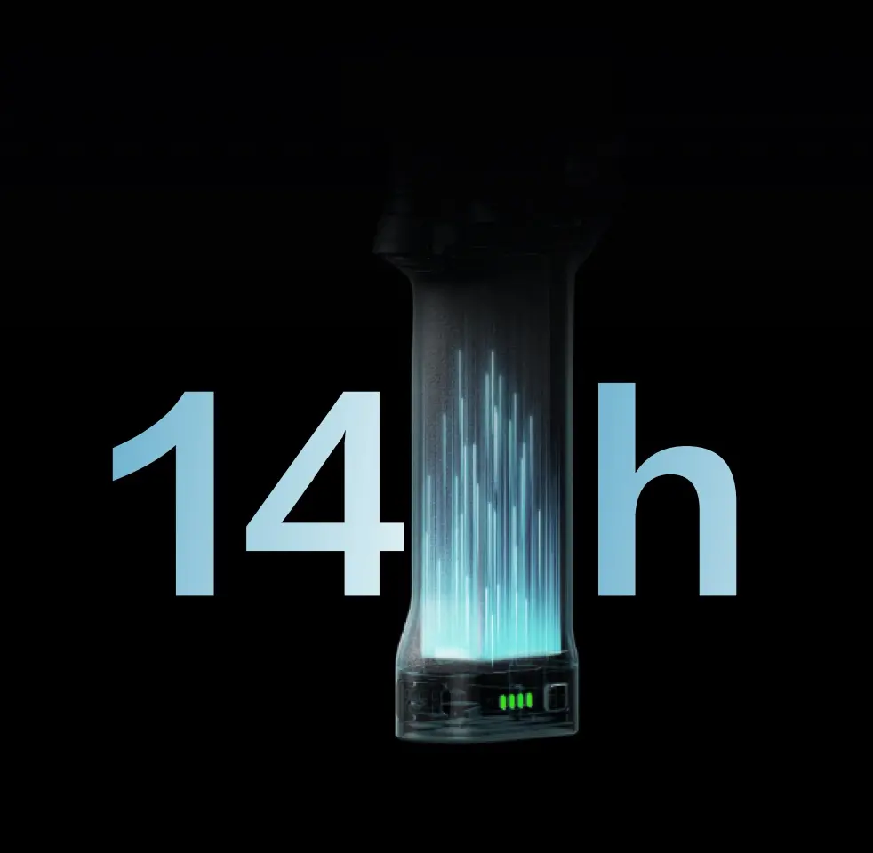 Ricarica completamente DJI RS 5 in appena un’ora: un aumento della velocità del 60%. La batteria standard garantisce circa 14 ore di standby, con un miglioramento del 15% [3].