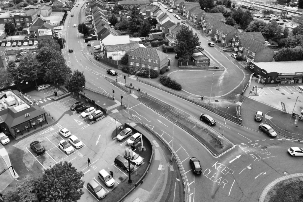 L’eventuale presenza di un fiume, di un canale artificiale, di piste ciclabili o strade secondarie, offre un’opportunità ideale per uno storytelling dal cielo che sia dinamico e coerente. Questi percorsi guidano lo sguardo di chi osserva e permettono di raccontare la città come una sorta di organismo vivente, perché l’alternarsi dei movimenti lineari dell’acqua e delle vie urbane creano ritmi e geometrie naturali. Inoltre, i voli lungo queste direttrici risultano più facili da controllare e pianificare, riducendo i rischi e mantenendo la distanza dalle persone. In questo modo è possibile esplorare angoli della città spesso trascurati, mostrando i collegamenti tra la natura, l’architettura urbana e la vita quotidiana, in un modo che, camminando per strada, sarebbe impossibile percepire.